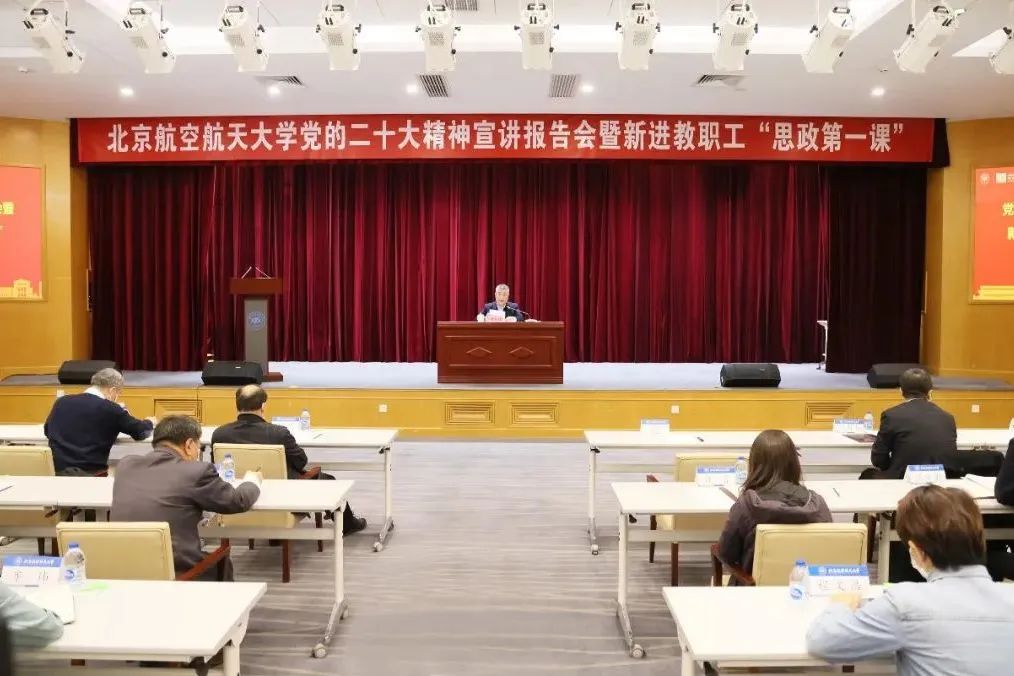 校长王云鹏结合学习贯彻党的二十大精神,从“传承:为国而生、与国同行”、“奋进:敢为人先、争创一流”和“寄语:踔厉奋发、勇毅前行”三个方面,为新进教职工作专题报告。王云鹏深情回顾了北航建校70年的发展历程和重大贡献,讲述了北航作为一所有情怀、有担当、有底蕴的大学,为国而生、与国同行,服务国家战略需求,始终践行为党育人、为国育才的光荣使命,阐述了北航在学科建设、人才培养、师资队伍、科技创新和治理能力等方面的总体规划和办学现状。他围绕党的二十大关于教育、科技、人才的重大战略部署和习近平总书记关于教育、科技、人才的重要论述,解读了北航站在新的历史起点上,加快建设中国特色、世界一流大学的远景目标。王云鹏对新进教职工提出了建议和期望,要讲好课程、做好科研、抓好育人,实现个人学习成长与学校事业发展的同频共振。他强调,教师应当坚持师德师风第一标准,坚定不移听党话、跟党走,怀抱梦想又脚踏实地,敢想敢为又善作善成,有理想、敢担当、能吃苦、肯奋斗,在建设中国特色、世界一流大学的征程中绽放绚丽之花。